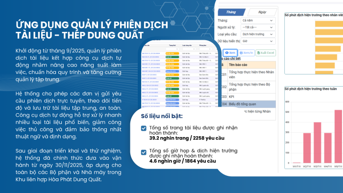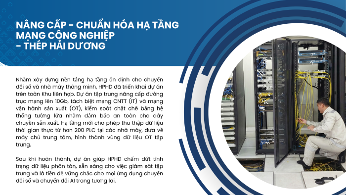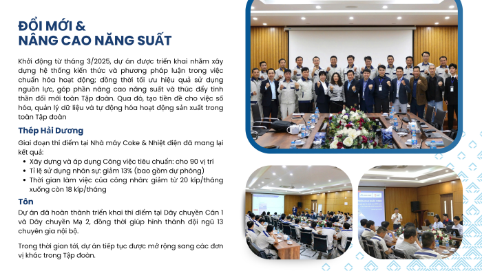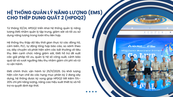 Trong năm 2025, Tập đoàn Hòa Phát tiếp tục đẩy mạnh chuyển đổi số gắn với đổi mới phương thức quản trị và vận hành sản xuất, tập trung vào các dự án trọng điểm mang tính nền tảng và lan tỏa. Các dự án không chỉ hướng tới giải quyết các bài toán trước mắt về năng suất, chi phí và an toàn, mà còn từng bước chuẩn hóa quy trình, dữ liệu và phương pháp quản lý, tạo tiền đề cho việc số hóa, tự động hóa và nâng cao hiệu quả hoạt động trên toàn Tập đoàn trong giai đoạn tiếp theo.