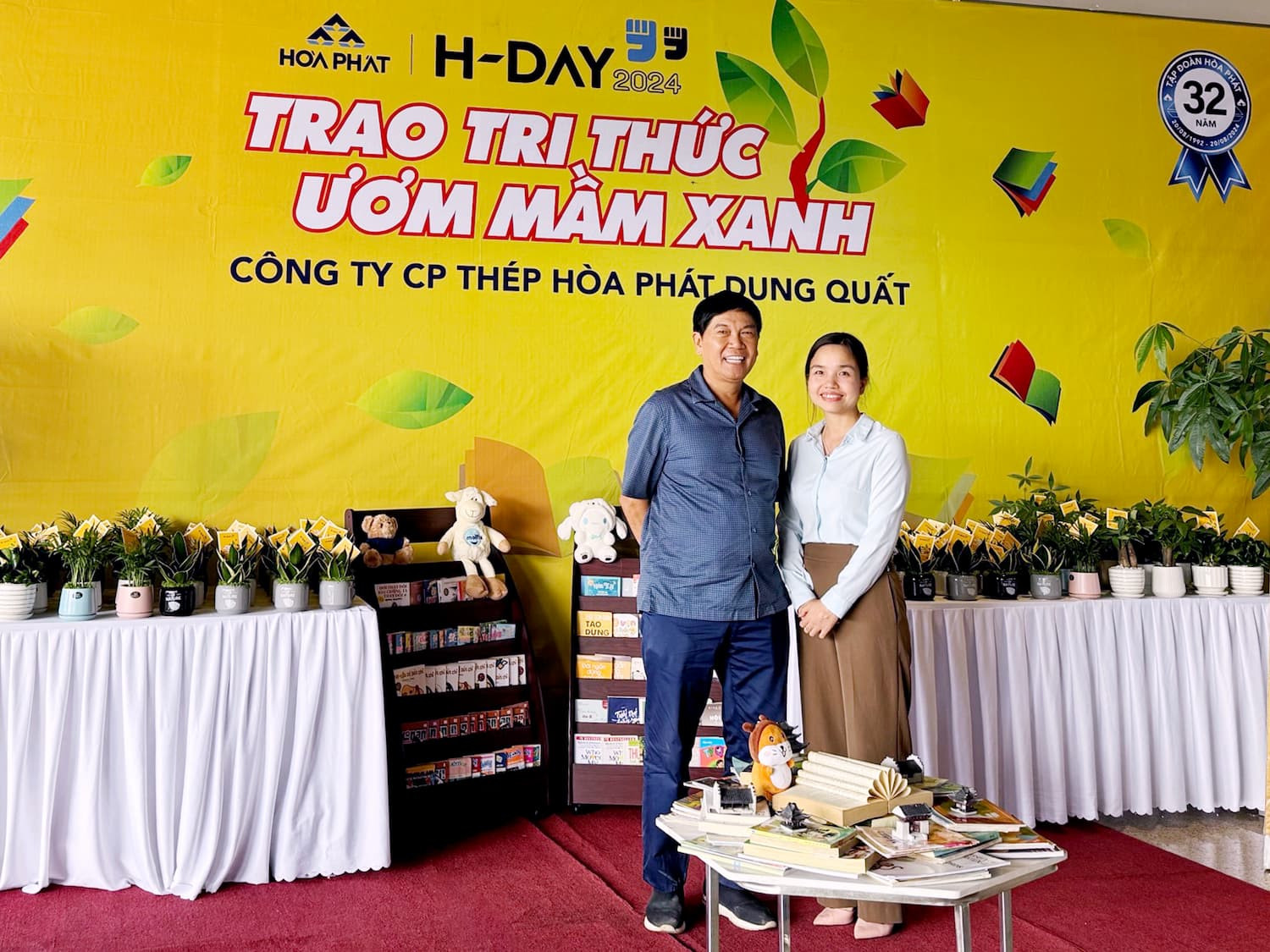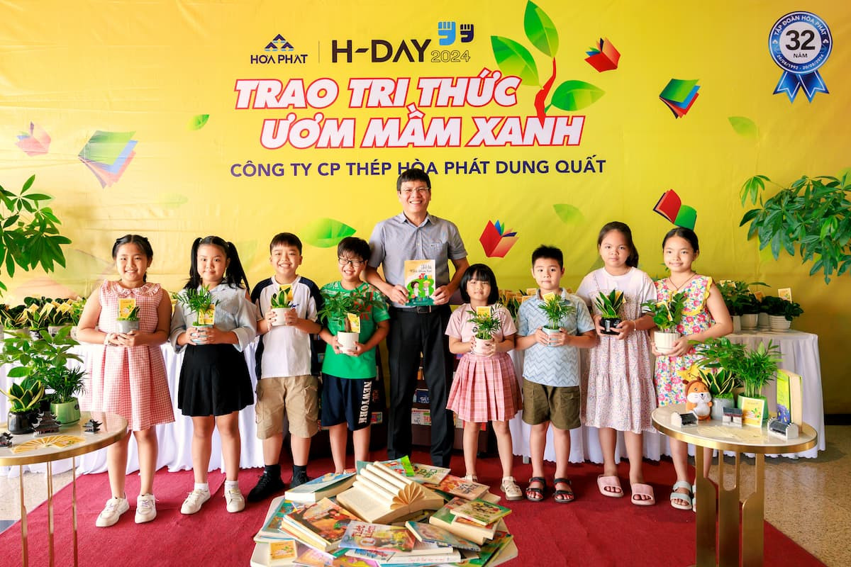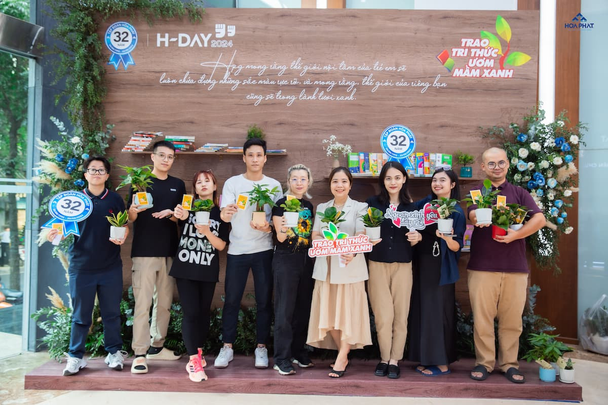 Ngày 16-17/8/2024, không khí tại Tập đoàn Hòa Phát náo nhiệt lạ thường. Những bước chân hối hả, những tiếng cười nói râm ran, những cuốn sách được sắp xếp gọn gàng và cả hương thơm từ những chậu cây xanh mát đang chờ đợi chủ nhân mới. Hoạt động “Trao tri thức, ươm mầm xanh” nằm trong chuỗi sự kiện H-Day 2024, nhân kỷ niệm 32 năm thành lập Tập đoàn Hòa Phát là ngày đặc biệt như thế!