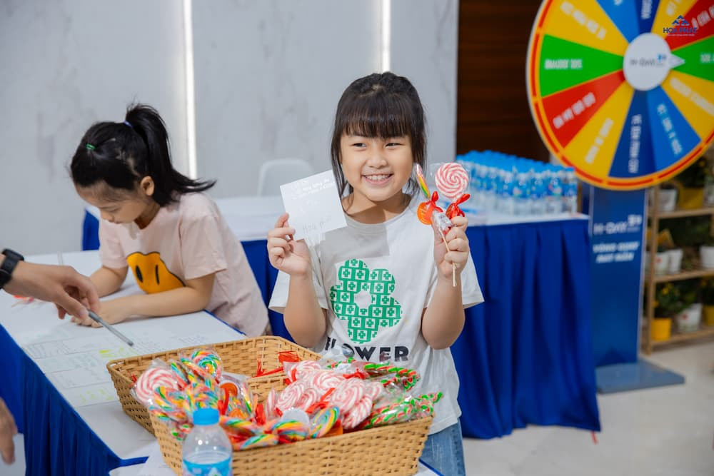 Bé Khánh Ngân thích thú khi tham gia sự kiện cùng mẹ, vừa làm điều tốt vừa được kẹo ngon