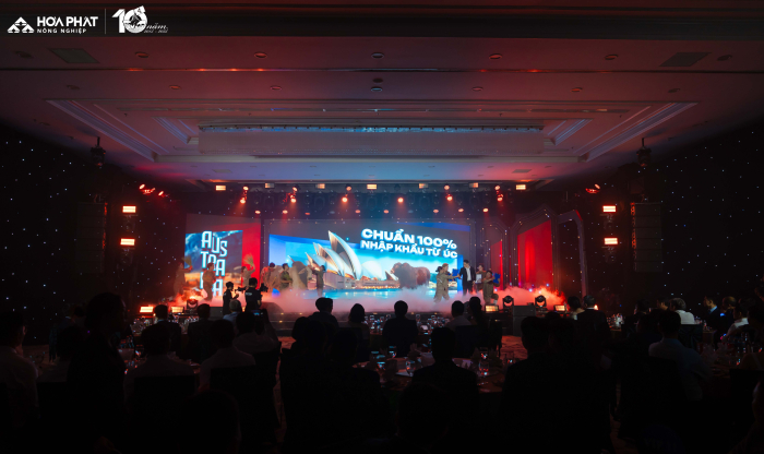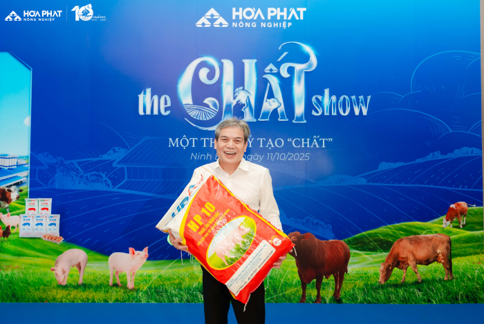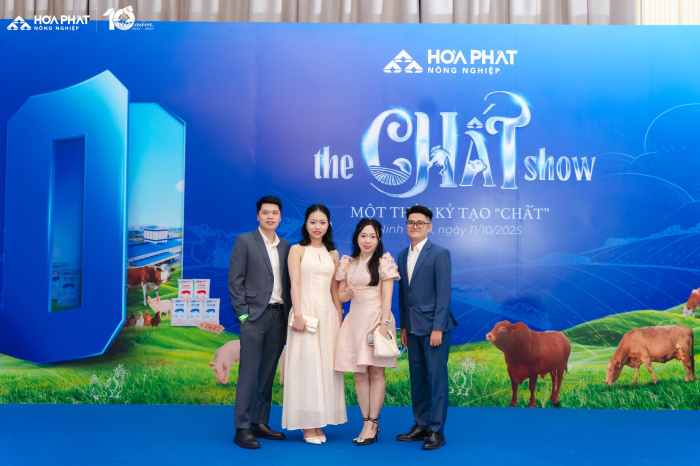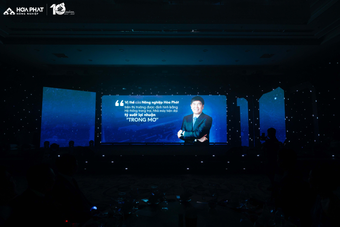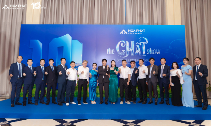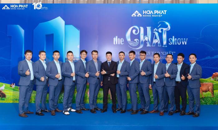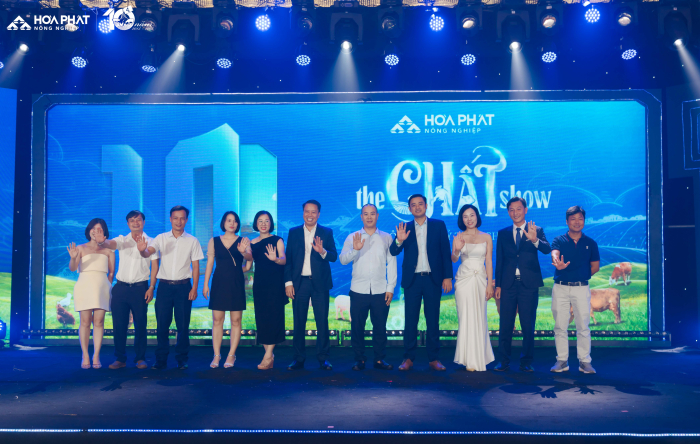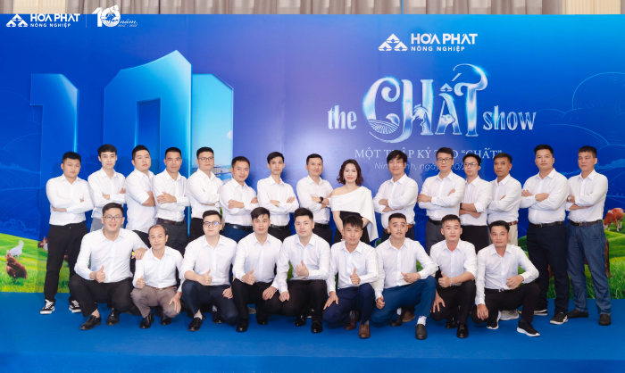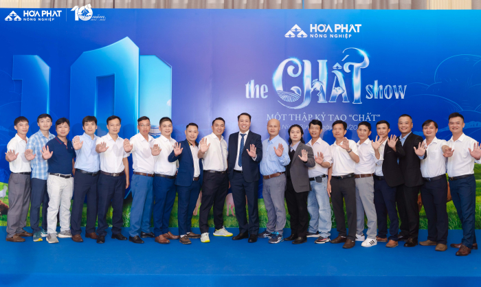 Lễ kỉ niệm 10 năm Nông Nghiệp Hòa Phát” với chủ đề “Một thập kỷ tạo Chất” có sự tham gia của gần 300 cán bộ, công nhân viên đến từ bốn công ty thuộc Nông nghiệp Hòa Phát và đặc biệt có sự tham gia của Hội đồng quản trị, Ban TGĐ Tập đoàn, điều này thể hiện sự quan tâm sâu sắc của BLĐ tới Nông nghiệp Hòa Phát. “The Chất Show” là cách Nông nghiệp Hòa Phát kể lại câu chuyện mười năm chọn việc khó để làm chuẩn, làm đến nơi đến chốn. 10 năm vun đắp văn hóa tin cậy và gen trội của Nông nghiệp Hòa Phát, 10 năm tạo nên “Chất” từ con người Hòa Phát dám nghĩ, dám làm, dám dấn thân thử thách và kiên định với mục tiêu ban đầu.