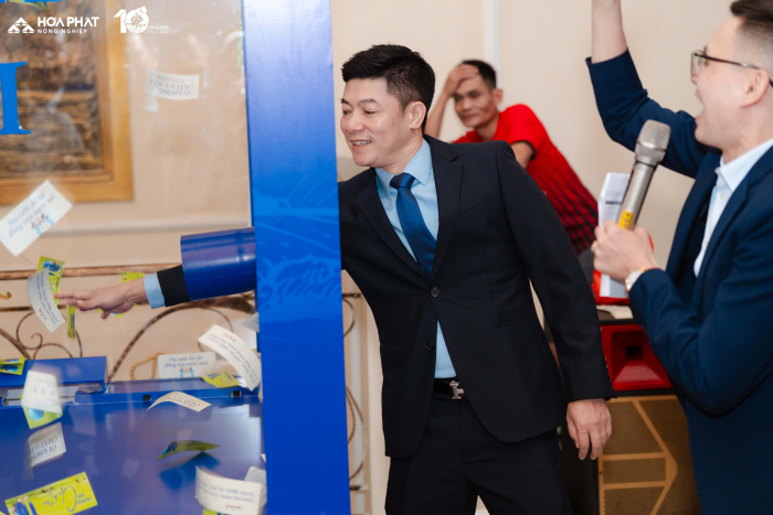 Anh Hoàng Văn Công, Phó giám đốc Công ty Thức ăn Chăn nuôi Hòa Phát Hưng Yên tham gia game “Đừng để Chất bay” Anh Nguyễn Văn Khánh - Phó giám đốc Công ty CP Phát triển Chăn nuôi Hoà Phát (Kiêm Giám đốc Công ty TNHH Chăn nuôi Hoà Phước) hào hứng tham gia “Đừng để chất bay”. Tiếng cười, tiếng cổ vũ vang lên khiến không gian sự kiện sôi động và gắn kết hơn