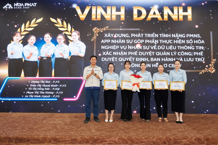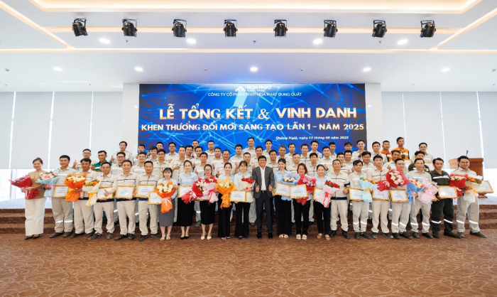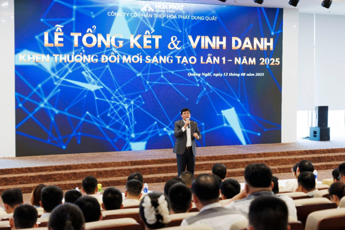 Chiều 12/8/2025, Thép Hòa Phát Dung Quất đã tổ chức Lễ vinh danh và trao thưởng Đổi mới Sáng tạo 6 tháng đầu năm. Sự kiện nhằm tôn vinh những cá nhân và tập thể có những sáng kiến xuất sắc, góp phần nâng cao hiệu quả sản xuất, tối ưu hóa quy trình và tiết kiệm nguồn lực.