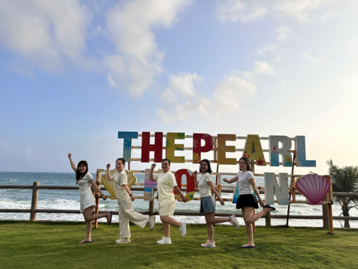 Chị em nhà Thép dạo khu vực biển quanh khách sạn.Hành trình của đoàn bắt đầu với điểm dừng chân ở thành phố biển Đà Nẵng. Tại đây, các chị em có dịp tham quan, nghỉ dưỡng và tận hưởng không gian thư giãn sau những ngày làm việc bận rộn. Tiếp đó, đoàn di chuyển đến The Pearl Hội An Resort – khu nghỉ dưỡng nổi bật với không gian xanh mát và kiến trúc hài hòa bên bờ biển.