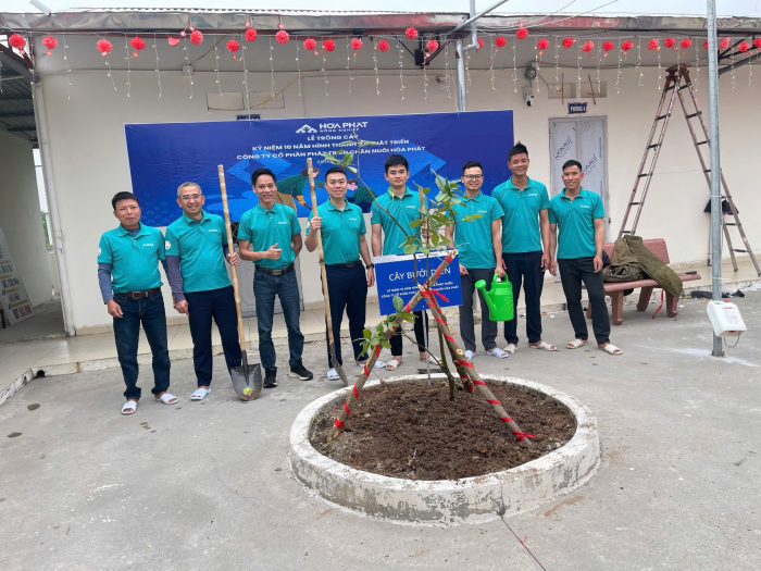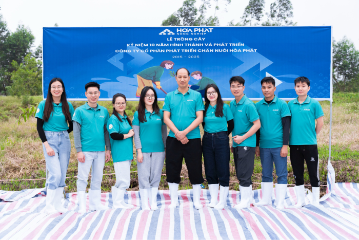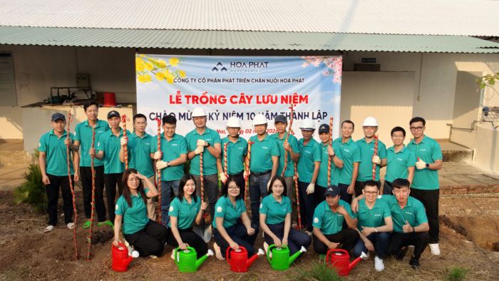 Ảnh trồng cây lưu niệm tại trại Long HàĐược thành lập năm 2015, Công ty Cổ phần Phát triển Chăn nuôi Hoà Phát hiện vận hành hệ thống trang trại trải dài từ Bắc vào Nam, chuyên chăn nuôi heo giống và heo thịt theo chuỗi khép kín. Sau 10 năm, sản lượng heo năm 2025 vượt 660.000 con, trong đó heo giống tăng 40% so với năm trước, mức cao nhất kể từ khi thành lập. ROE mảng chăn nuôi heo đạt 83%, dẫn đầu các mảng kinh doanh của Tập đoàn Hoà Phát.