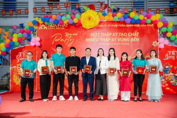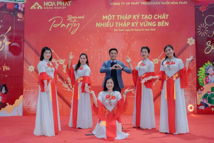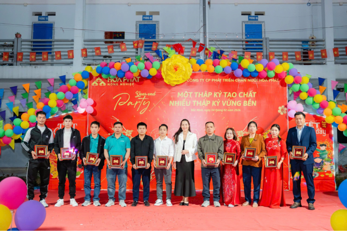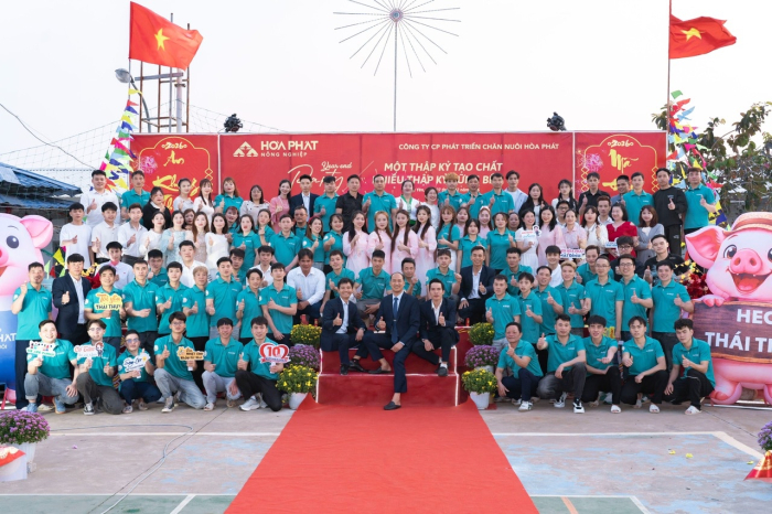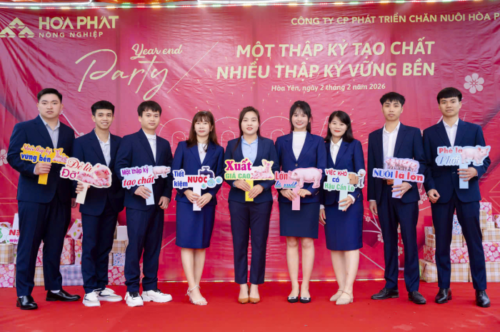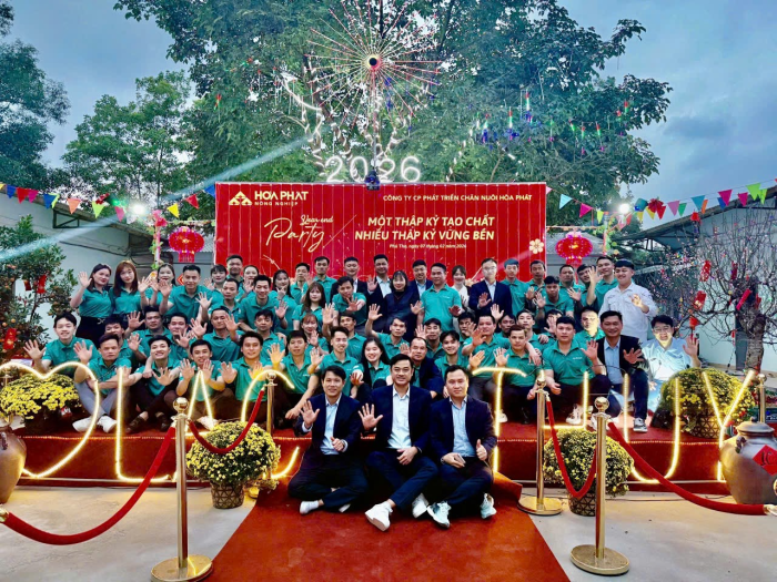 Cuối tháng 12/2025, các trại trong hệ thống Công ty Cổ phần Phát triển Chăn nuôi Hòa Phát đồng loạt tổ chức chương trình Tất niên. Năm nay cũng là dịp Công ty kỷ niệm tròn 10 năm thành lập. Khác với mọi năm, lần đầu tiên cán bộ nhân viên khối Văn phòng Hà Nội trực tiếp về từng trại tham dự cùng anh em sản xuất.