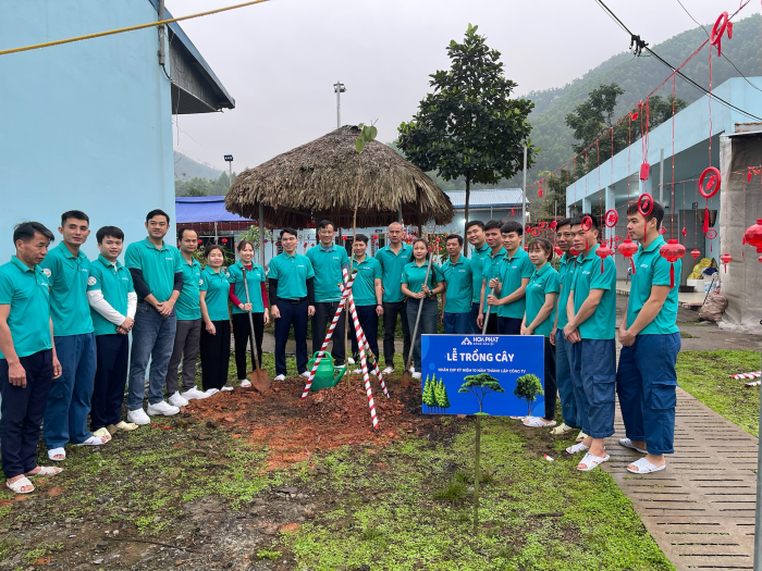 Ban Giám đốc cùng CBNV trồng cây lưu niệm tại trại Bầu - Đồng Chòi