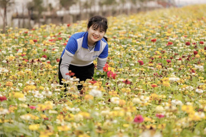 Để có được khu liên hợp ngập tràn sắc xuân như hôm nay là công sức bền bỉ của những con người thầm lặng phía sau. Trong số đó có chị Đỗ Thị Viên – Nhân viên Cây xanh, BP. Quản lý hạ tầng, người đã gắn bó nhiều năm với công việc chăm sóc cây xanh, hoa cảnh trong toàn khu vực.