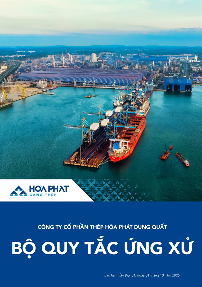 Bộ Quy tắc ứng xử là kim chỉ nam định hướng tư duy, hành động và phong cách ứng xử của mỗi cán bộ công nhân viên trong mọi tình huống, từ công việc nội bộ, quan hệ đồng nghiệp đến giao tiếp với khách hàng, đối tác và cộng đồng. Dựa trên 8 giá trị cốt lõi của Công ty: An toàn – Kỷ luật – Trung thực – Trách nhiệm – Hợp tác – Sáng tạo – Phát triển – Bền vững, tài liệu này thể hiện rõ bản sắc và tinh thần của Thép Hòa Phát Dung Quất.