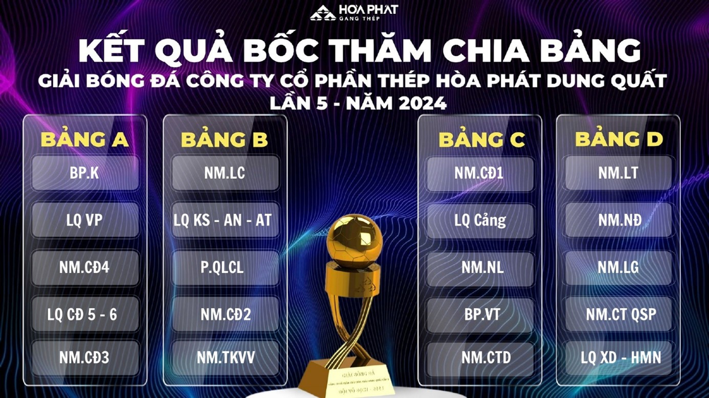 Thép Hòa Phát Dung Quất bốc thăm chia bảng giải bóng đá lần 5 – năm 2024