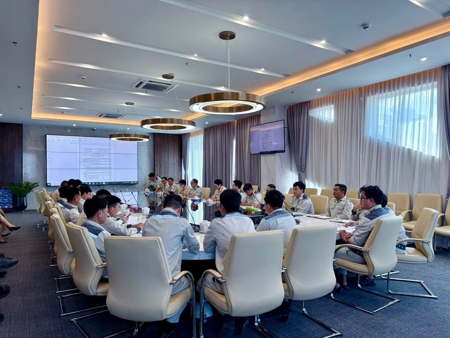 Tham dự cuộc họp có Ban giám đốc Công ty và đại diện từ các phòng ban, đơn vị liên quan trực tiếp đến công tác tổ chức, tuyển chọn và chuẩn bị cho kỳ thi. Không khí cuộc họp diễn ra hết sức sôi nổi, cởi mở và mang tính xây dựng cao, thể hiện sự quan tâm và cam kết đồng lòng của toàn hệ thống trong việc đưa hội thi trở thành dấu ấn chuyên môn – văn hóa đầu tiên trong năm 2025 của Tập đoàn.