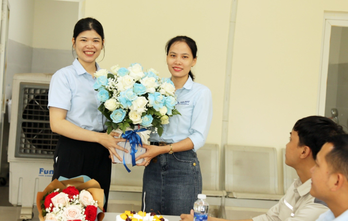 Chị Lường Thị Thu tặng hoa cho đội ngũ y bác sĩ của Công tyChị Lường Thị Thu – Quyền Phó phòng An toàn Môi trường bày tỏ sự trân trọng đối với những nỗ lực bền bỉ của đội ngũ y tế, đồng thời mong muốn các y sĩ, bác sĩ tiếp tục phát huy chuyên môn, y đức và tinh thần trách nhiệm, góp phần xây dựng môi trường làm việc an toàn, nhân văn và phát triển bền vững.