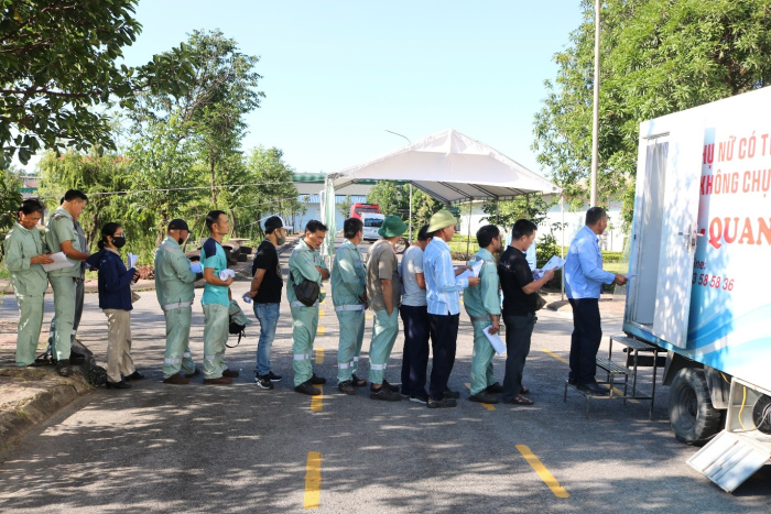 Với quy mô hơn 5.000 lao động, công tác tổ chức được sắp xếp hợp lý theo từng nhà máy, ca làm việc nhằm không ảnh hưởng đến hoạt động sản xuất. Tại khu vực khám, các phòng ban phối hợp chặt chẽ để hướng dẫn, phân luồng, đảm bảo trật tự và thuận tiện cho người lao động.