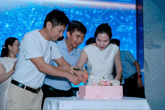 Nghi thức cắt bánh của Ban lãnh đạo công tyKết thúc phần lễ trang trọng, không khí bùng nổ với âm nhạc, trò chơi và những màn giao lưu sôi động. Các tiết mục văn nghệ được chuẩn bị công phu, cùng loạt trò chơi tương tác như Kahoot, “Đuổi emoji bắt ca dao” và các thử thách vận động vui nhộn đã mang lại tiếng cười sảng khoái, lan tỏa năng lượng tích cực.