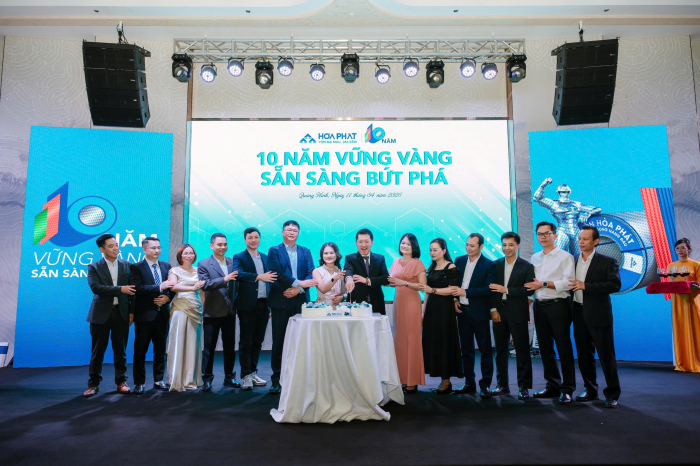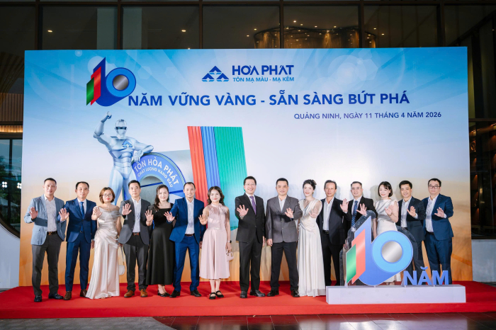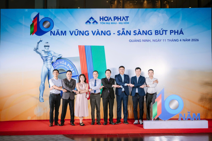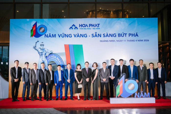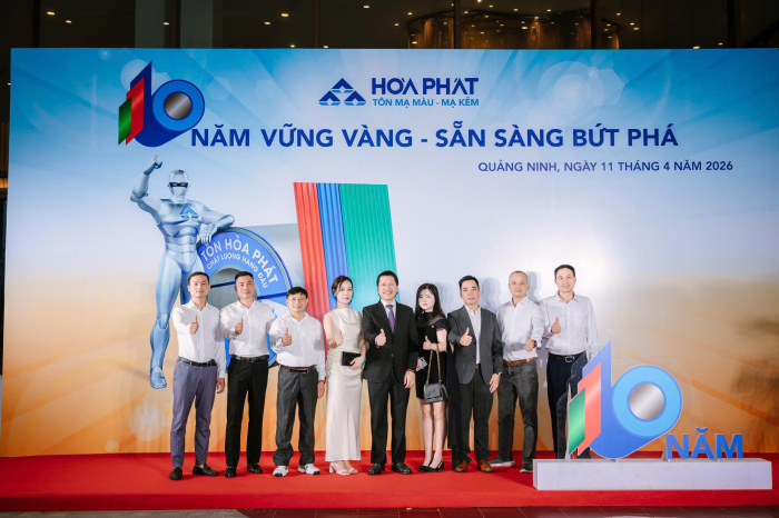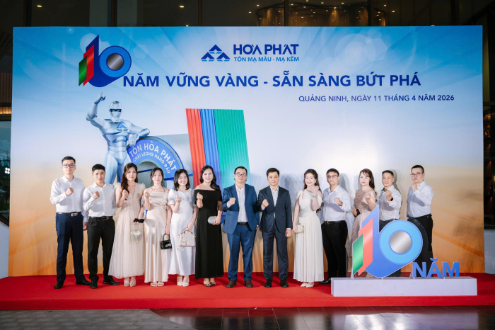 Lễ kỷ niệm 10 năm Tôn Hòa Phát được tổ chức vào ngày 11/4/2026 tại Wyndham Garden Sonasea Vân Đồn (Quảng Ninh) với chủ đề “10 năm vững vàng, sẵn sàng bứt phá”. Buổi lễ diễn ra trong không khí trang trọng, ấm áp với sự tham gia của 150 cán bộ, công nhân viên và đặc biệt có sự tham gia của Hội đồng quản trị, Ban Tổng Giám đốc Tổng Công ty Sản phẩm Thép, ống thép Hòa Phát.