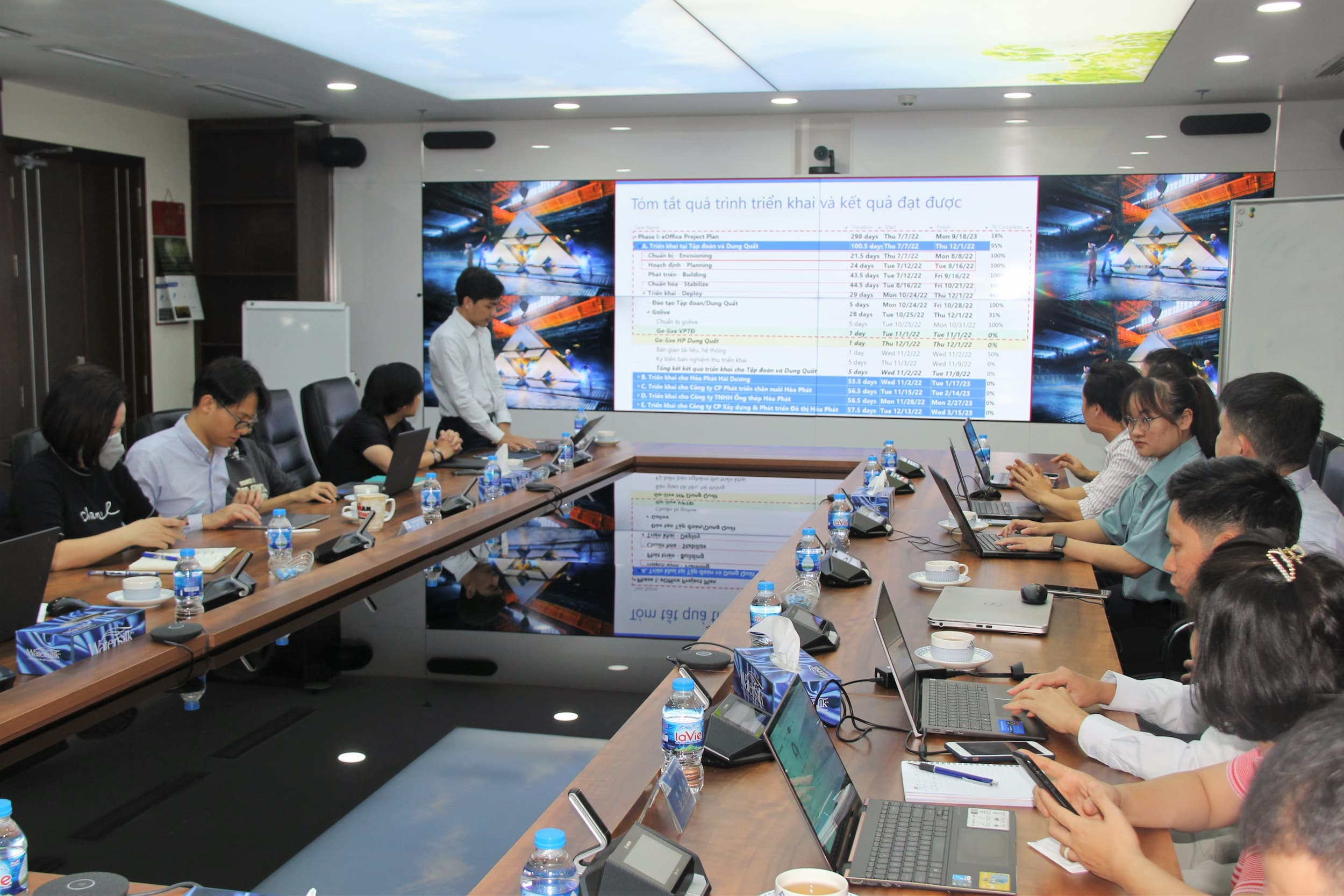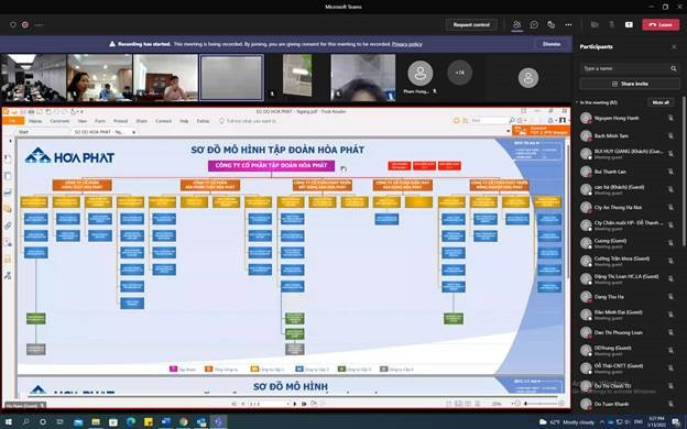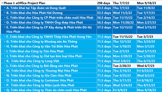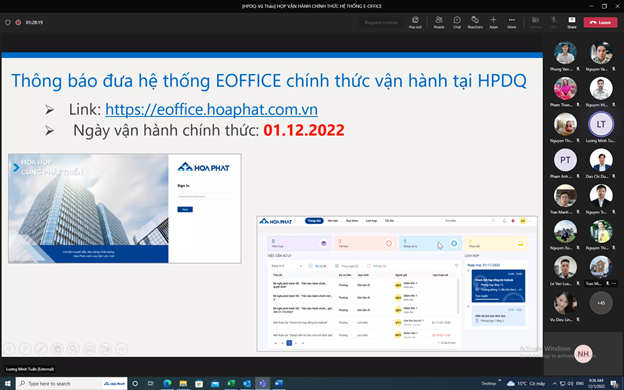 Trước mắt, Văn phòng Tập đoàn sẽ áp dụng trước từ 1/11/2022. Công ty CP Thép Hòa Phát Dung Quất dự kiến sẽ đào tạo sử dụng cho nội bộ và áp dụng sau khoảng một tháng. Các công ty thành viên khác trong Tập đoàn cũng đang được tiến hành cuốn chiếu và dự kiến hoàn thành trong năm 2023.