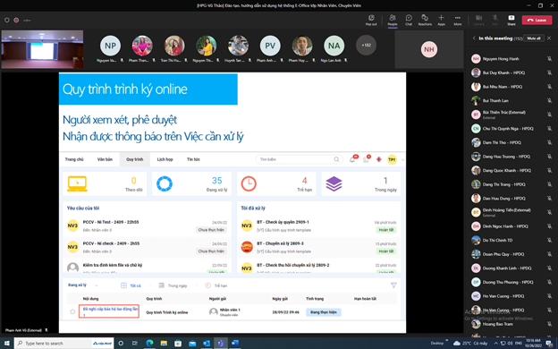 Chị Nguyễn Thị Thảo Nguyên, Phó Tổng giám đốc Tập đoàn chia sẻ, từ ngày 1/11/2022, các phòng ban sẽ chính thức sử dụng các văn bản trình ký trên e-office, không sử dụng văn bản giấy đối với các quy trình đã có trên hệ thống.